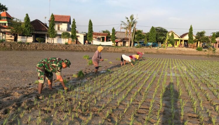 Lamongan, LNM – Babinsa Kecamatan Kota, Kabupaten Lamongan terlihat berjibaku dengan para petani yang ada di wilayah teritorialnya.