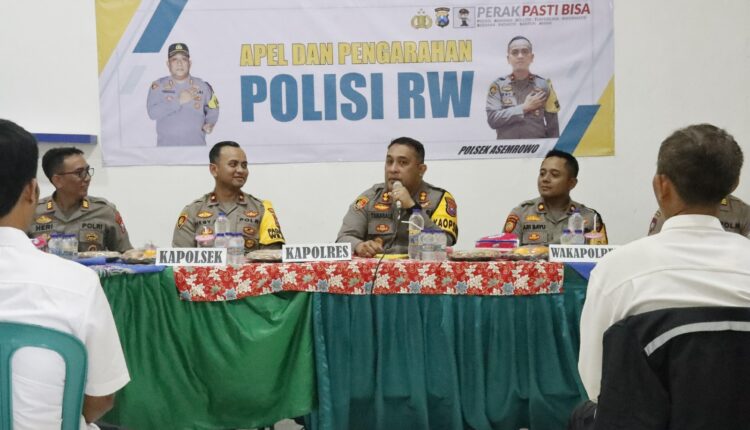 Surabaya, LNM – Kapolres Pelabuhan Tanjung Perak melaksanakan apel dan pengarahan Polisi RW di Balai RW 01 Kelurahan Asemrowo Jalan Asem Raya 2 Surabaya, pada Rabu (03/01/2024).