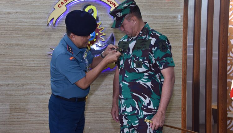 Surabaya, LNM – Menjadi Warga Kehormatan Pusat Penerbangan TNI Angkatan Laut (Puspenerbal), Komandan Kodiklatal (Dankodiklatal) Letjen TNI Marinir Nur Alamsyah menerima Wing Penerbang TNI Angkatan Laut (TNI AL) yang disematkan langsung oleh Komandan Puspenerbal (Danpuspenerbal) Laksda TNI Sisyani Jaffar saat mengunjungi Dankodiklatal di Mako Kodiklatal, Bumimoro Surabaya, Selasa (16/01/2024).
