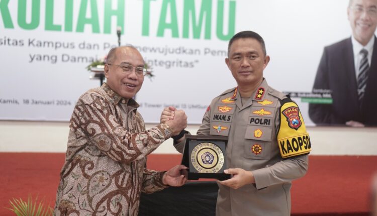 SURABAYA, LNM – Kapolda Jawa Timur Irjen Pol Imam Sugianto kuliah umum di Universitas Muhammadiyah Surabaya (UMS). Dalam kuliah umum yang dilaksanakan di Gedung At Tauhid Tower UM Surabaya ini juga digelar deklarasi pemilu damai dan berintegritas.