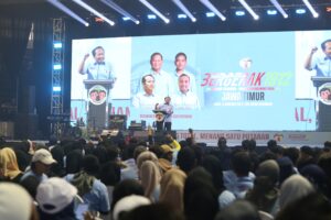 SURABAYA, LNM – Relawan Bergerak 1912 mendeklarasikan dukungan untuk pasangan Prabowo Subianto-Gibran Rakabuming Raka. Targetnya, paslon nomor urut 02 itu bisa menang satu putaran di Pilpres 2024.