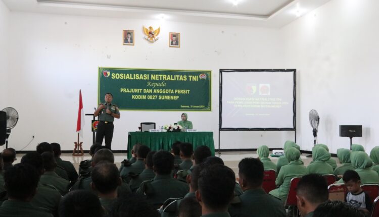 Hal tersebut disampaikan kepada seluruh prajurit dan persit Kodim 0827/Sumenep pada kegiatan sosialisasi netralitas TNI di Aula Makodim 0827/Sumenep, Rabu (31/1/2024).