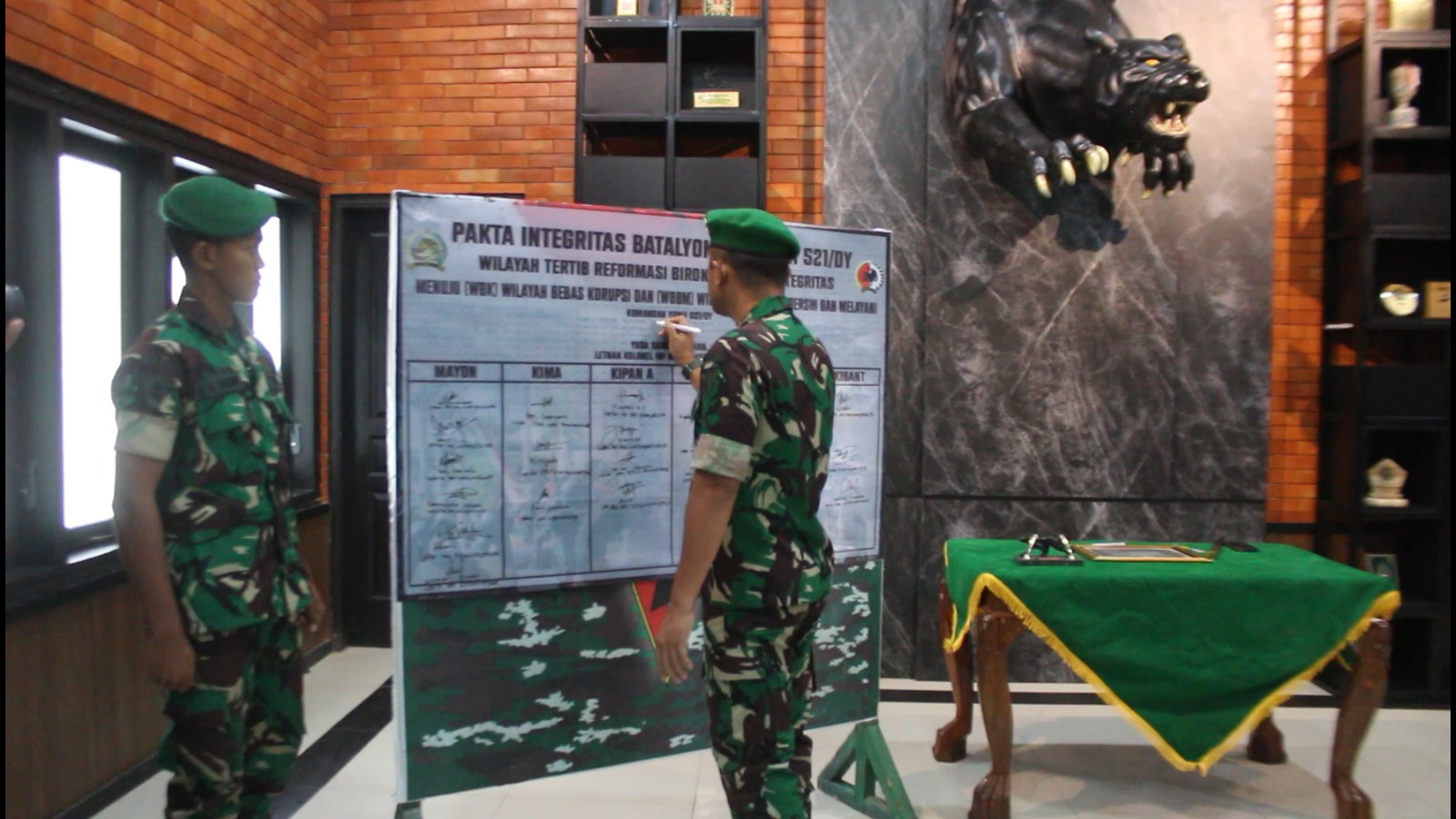 Pakta integritas yang disepakati oleh Danyonif tersebut, juga berisi soal peran proaktif dalam segala bentuk pecegajan terjadinya KKN.
