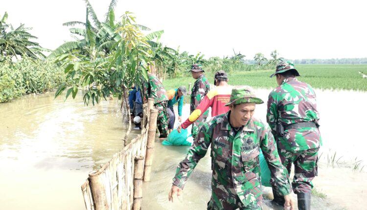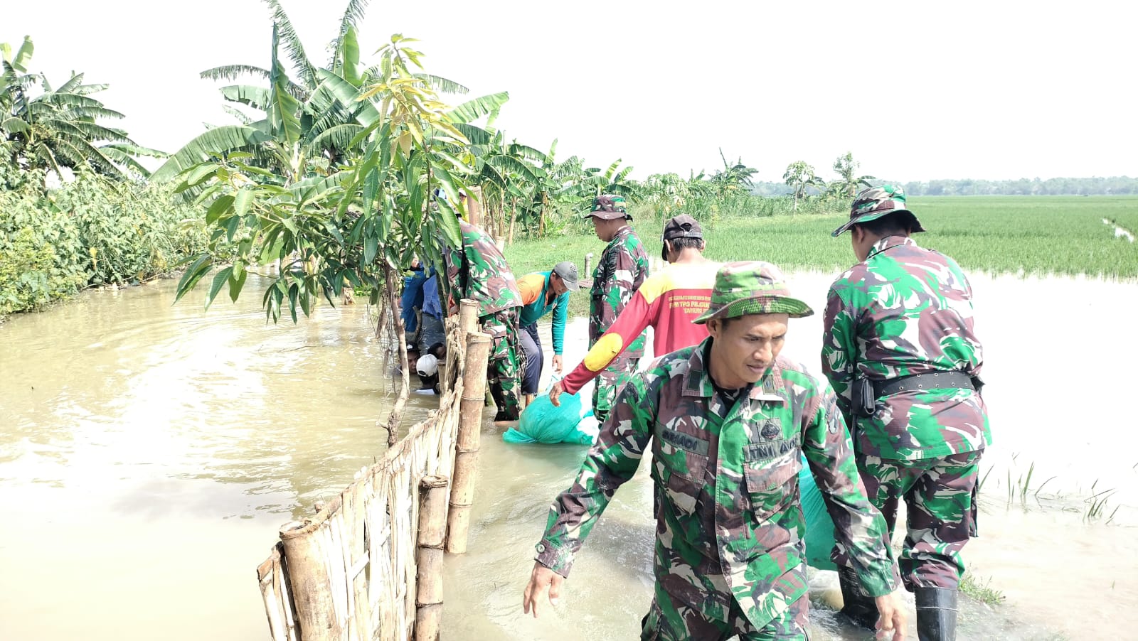 Koramil Modo Turun Tangan Lakukan Penanggulangan Tanggul Jebol
