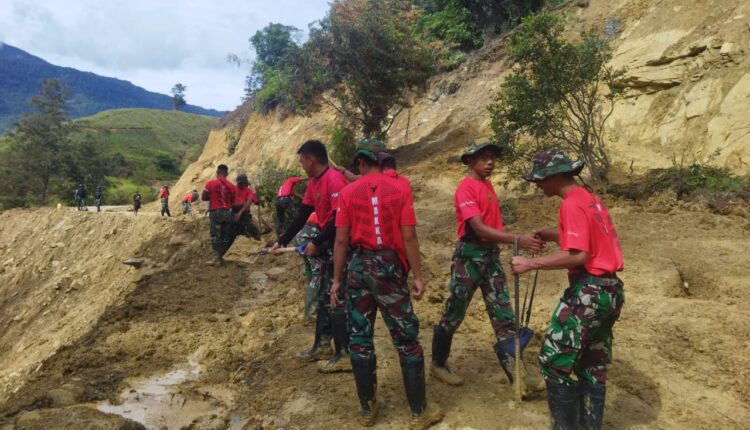 Longsor di Distrik Balingga, Yonif 721/Makkasau Ambil Langkah Sigap