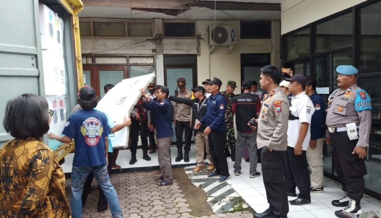 Proses pendistribusian logistik dari gudang logistik KPU mendapat pengawalan ketat dari Petugas Kepolisian Polsek Simokerto Polrestabes Surabaya saat mendistribusikan logistik ke Kecamatan Simokerto.