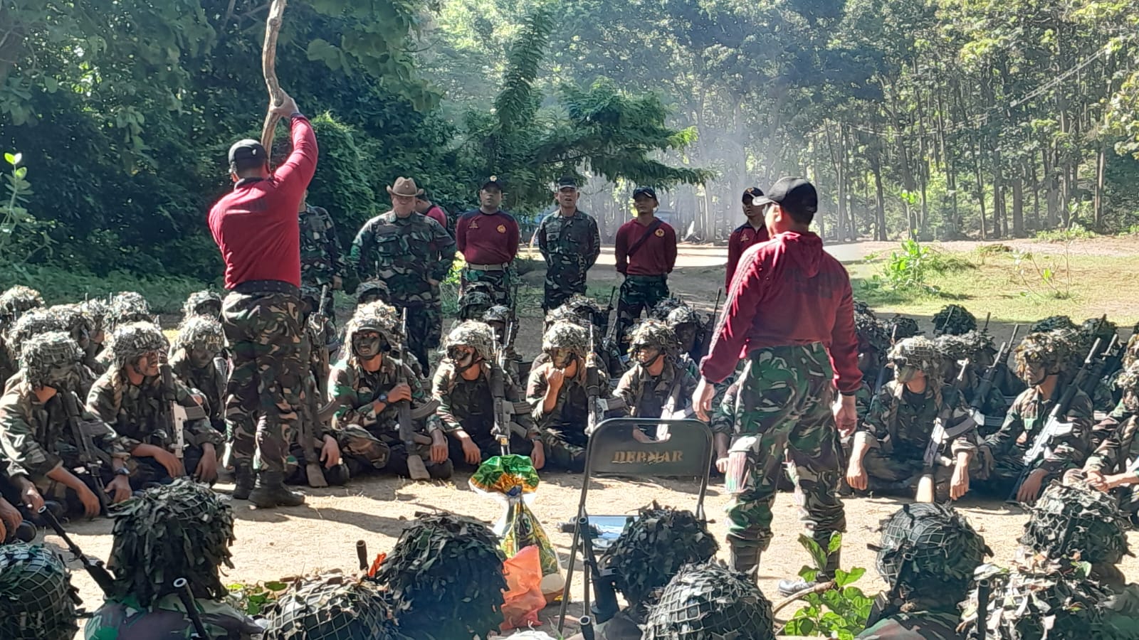 Surabaya, LNM – Guna meningkatkan moril siswa terus menyala dengan memberikan semangat, Kapokgadik Kodiklatal, Brigjen TNI Marinir Sarjito meninjau Latihan Praktek (Lattek) Siswa Pendidikan Komando (Dikko) Angkatan 173 Marinir Tahap Hutan yang diikuti 57 Siswa Taruna AAL Angkatan 71, 101 Siswa Dikmaba 43/1 dan 342 Siswa Dikmata 43/1, bertempat di Hutan Selogiri Kecamatan Kalipuro Banyuwangi, Senin (19/02/2024).