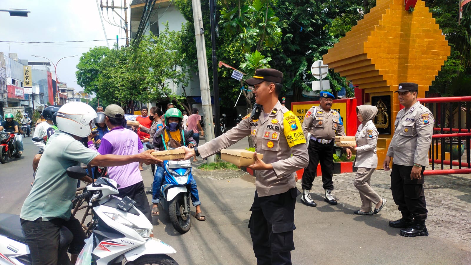 Polsek Simokerto Sempatkan Bagikan 100 Nasi Kotak Disela-sela Rekapitulasi Suara Pemilu 2024