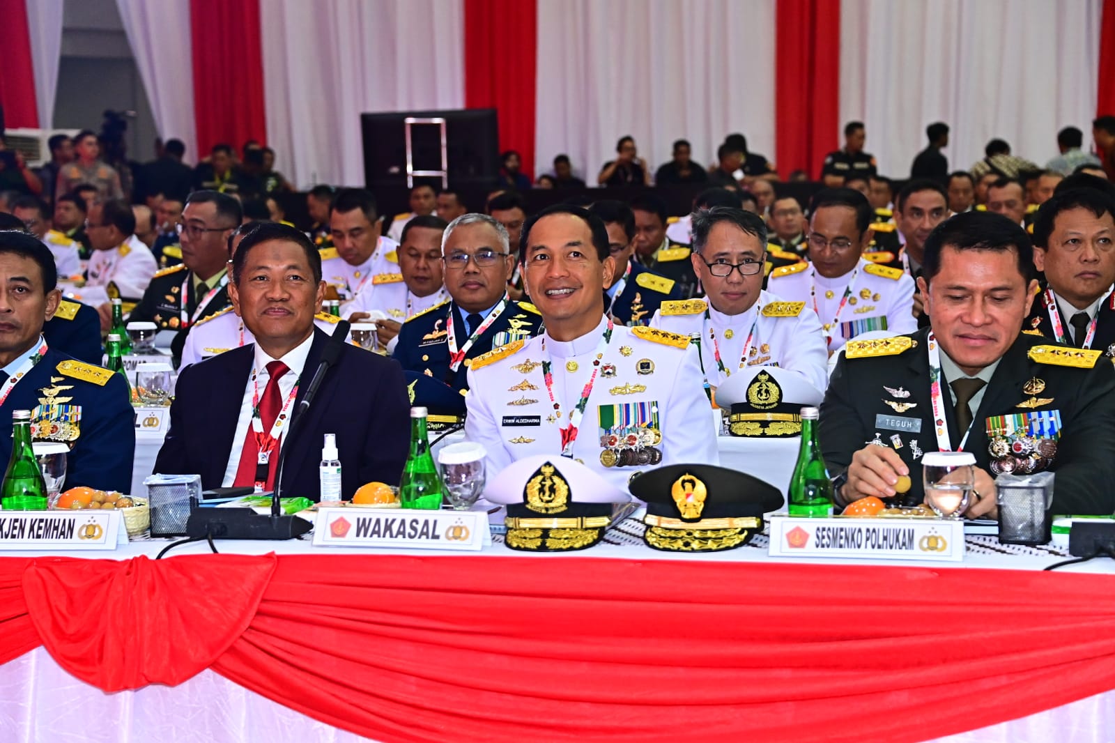 Dalam Rapim TNI-Polri yang mengangkat tema, “TNI-POLRI Siap Mewujudkan Pertahanan Keamanan Untuk Indonesia Maju”, Presiden RI didampingi Panglima TNI Jenderal TNI Agus Subiyanto, Kapolri Jenderal Polisi Listyo Sigit Probowo, Kasad Jenderal TNI Maruli Simanjuntak, Kasal Laksamana TNI Dr. Muhammad Ali, dan Kasau Marsekal TNI Fadjar Prasetyo Agus Supriatna.