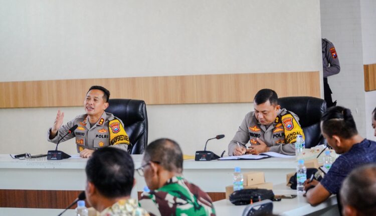Surabaya, LNM – Wakapolrestabes Surabaya, AKBP Wimboko, S.I.K., M.H., memimpin rapat koordinasi dalam rangka membahas rencana pengamanan pertandingan sepak bola antara Persebaya vs Madura United, Jum’at (8/03).