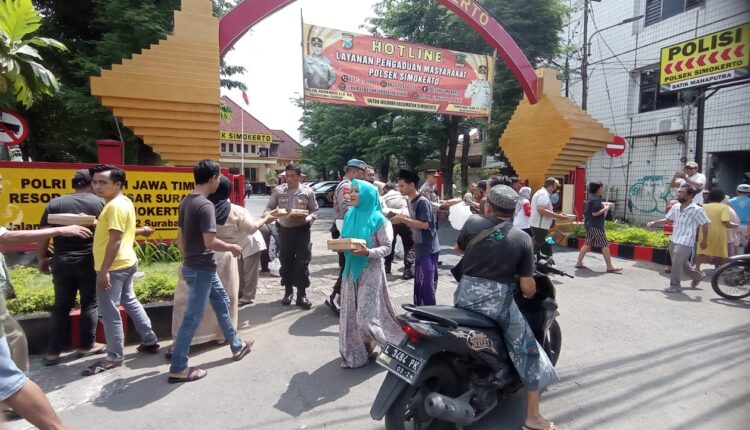 Ratusan Orang Senang Berebut Nasi Kotak Yang Di Bagikan Polsek Simokerto