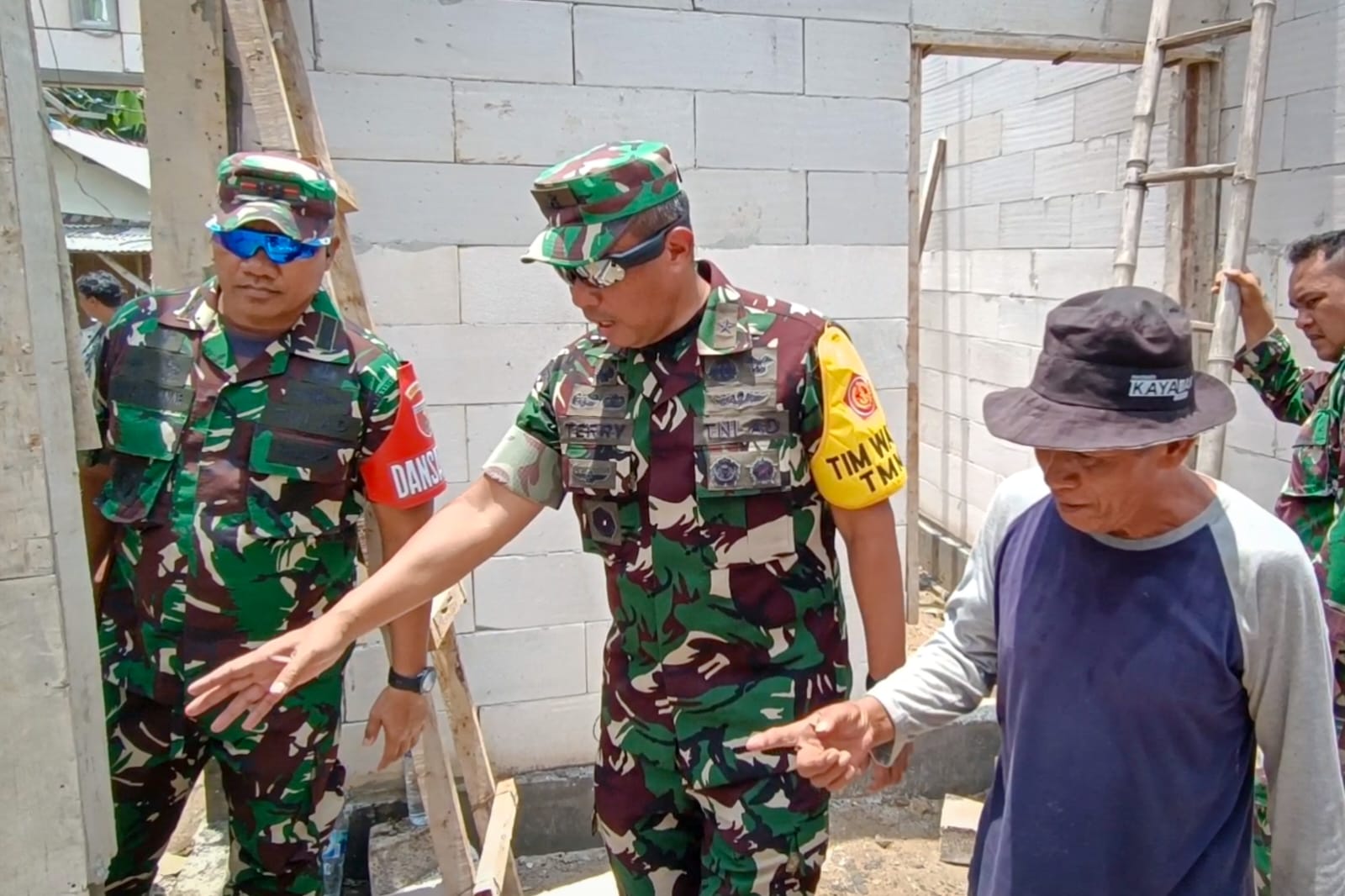 “Alhamdulillah, seneng, rumah saya bocor semua, sekarang direnovasi bantuan dari tentara”ungkap Lilik saat ditemui sujud syukur di depan rumahnya yang sedang di renovasi.