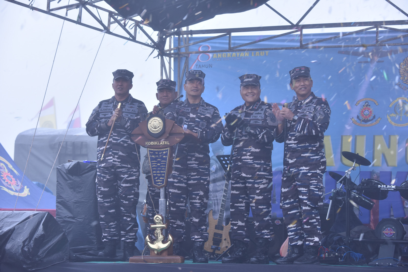 Surabaya, LNM – Komandan Kodiklatal (Dankodiklatal) Letjen TNI Marinir Nur Alamsyah mendampingi Wakil Kepala Staf Angkatan Laut (Wakasal) Laksdya TNI Erwin S. Aldedharma yang mewakili Kepala Staf Angkatan Laut (Kasal) Laksamana TNI Dr. Muhammad Ali melaksanakan Launching Hari Pendidikan TNI Angkatan Laut (Hardikal) Ke-78 Tahun 2024 dan Bakti Sosial (Baksos) yang diselenggarakan di Kawasan Pura Luhur Poten Bromo. Jawa Timur, Rabu (13/03/2024).