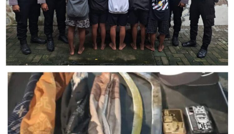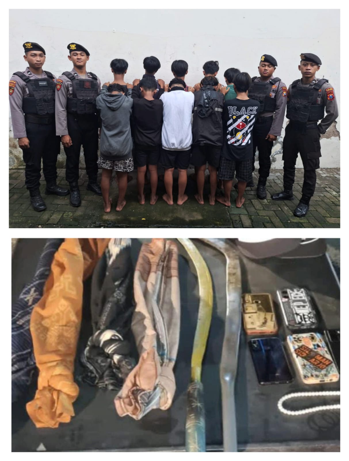 Surabaya, LNM – Sat Samapta Polres Pelabuhan Tanjung Perak Surabaya Jawa Timur mangamankan 10 remaja dari kelompok anggota Gangster All Star Surabaya diduga hendak melakukan aksi tawuran.