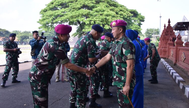 Surabaya, LNM – Masih dalam suasana Hari Raya Idul Fitri 1 Syawal 1445 H / 2024 M, Komandan Kodiklatal (Dankodiklatal) Letjen TNI Marinir Nur Alamsyah didampingi Ketua Gabungan Jalasenastri Kodiklatal Ny. Ayu Nur Alamsyah menggelar Halal Bihalal bersama Prajurit dan PNS Kodiklatal setelah melaksanakan cuti lebaran, bertempat di Lapangan Laut Maluku Kodiklatal, Bumimoro Surabaya, Selasa (16/04/2024).