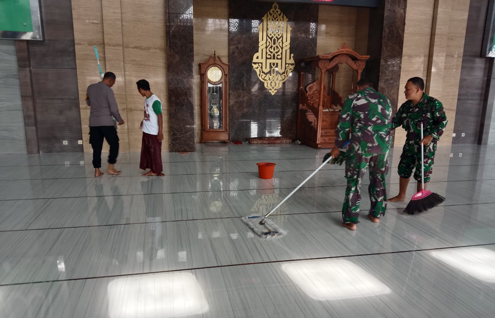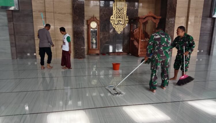 Kuatkan Sinergitas, Sertu Sugiyan Jaya Karya Bakti Pembersihan Tempat Ibadah Bersama