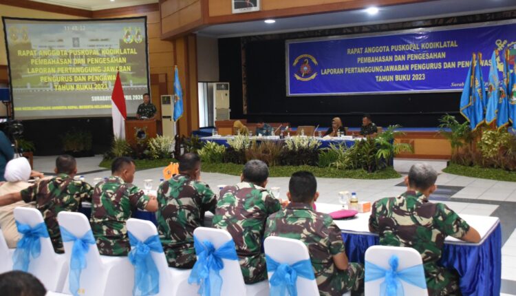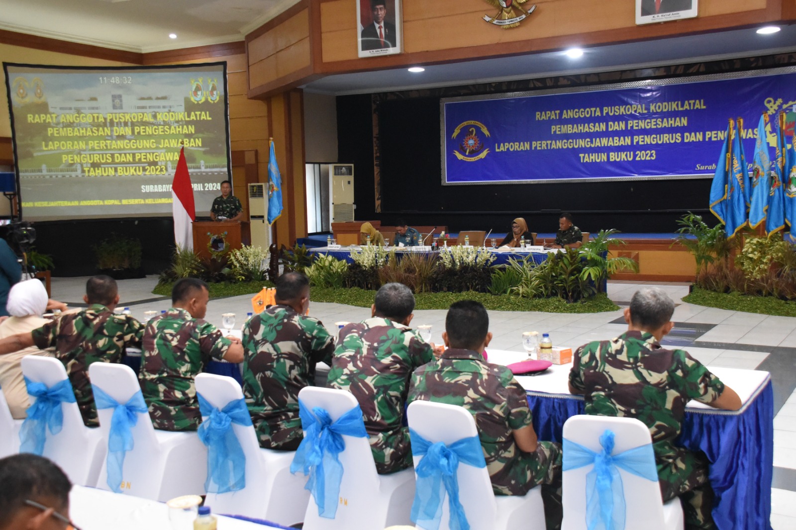 Surabaya, LNM – Komandan Kodiklatal (Dankodiklatal) Letjen TNI Marinir Nur Alamsyah memimpin Pembukaan Rapat Anggota Pusat Koperasi TNI Angkatan Laut (Puskopal) Kodiklatal Tahun Buku 2023, yang mengusung tema, “Dengan Sinergitas Koperasi Angkatan Laut, Kita Bangun Pilar Usaha Yang Mandiri dan Handal Guna Mewujudkan Kesejahteraan Anggota Koperasi Angkatan Laut Beserta Keluarganya”, bertempat di Gedung R. Mulyadi Kodiklatal, Bumimoro Surabaya, Selasa (30/04/2024).