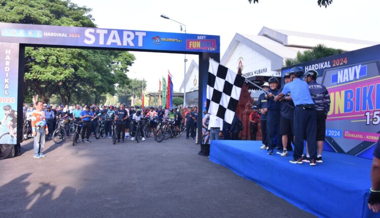Surabaya, LNM – Mewarnai peringatan Hari Pendidikan Angkatan Laut (Hardikal) ke – 78 Tahun 2024, Lembaga TNI Angkatan Laut (TNI AL) dalam hal ini Kodiklatal, Seskoal, AAL, dan STTAL menyelenggarakan Navy Fun Bike 15 Km bersama TNI – Polri dan masyarakat Jawa Timur dengan mengelilingi markas TNI AL Wilayah Surabaya, Rabu (01/05/2024).