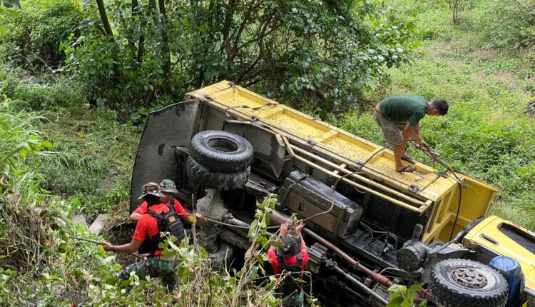 “Kami mendapat laporan dari masyarakat kalau ada truk pengangkut sembako yang masuk ke jurang,” ucap Danpos Kanggime.