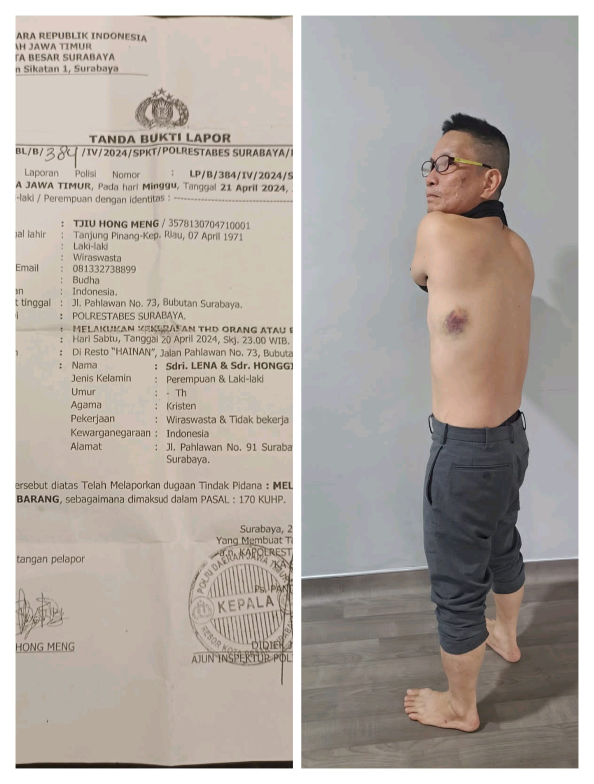 Ameng menambahkan bahwa laporannya ke polisi dengan nomor laporan TBL/B/384/IV/2024/SPKT/POLRESTABES SURABAYA/POLDA JAWA TIMUR, hingga saat ini masih belum menampakan progres yang jelas. Entah kenapa, apalagi kedua pelaku tersebut masih bebas berkeliaran.