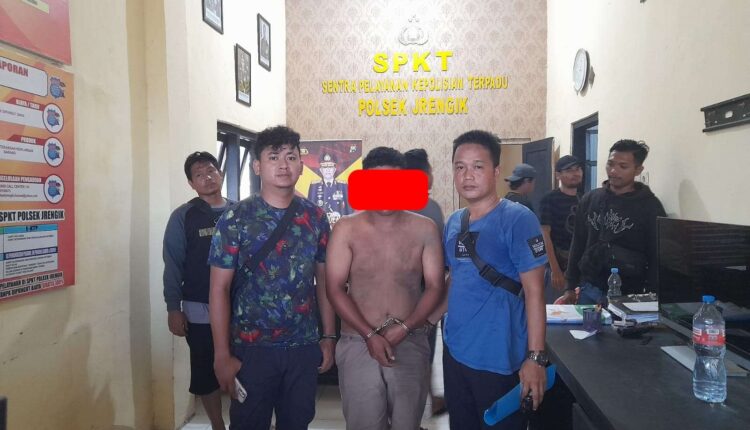 Tidak berselang lama, Anggota dari Kepolisian Polsek Jrengik tiba di lokasi kejadian dan mengamankan terduga pelaku lalu di bawa ke Mapolsek Jrengik. Taufik Kanit Reskrim Polsek Jrengik melalui pesan Whatsapp mengatakan ” benar, kami telah mengamankan satu orang laki-laki berinisial AR, yang di duga melakukan tindak pidana pencurian dengan pemberatan (Curat), saat di interogasi terduga pelaku mengatakan tinggal di Dusun Panggung, Sampang.” Jelasnya, saat di konfirmasi oleh awak media lintasnetworkmedia.com.