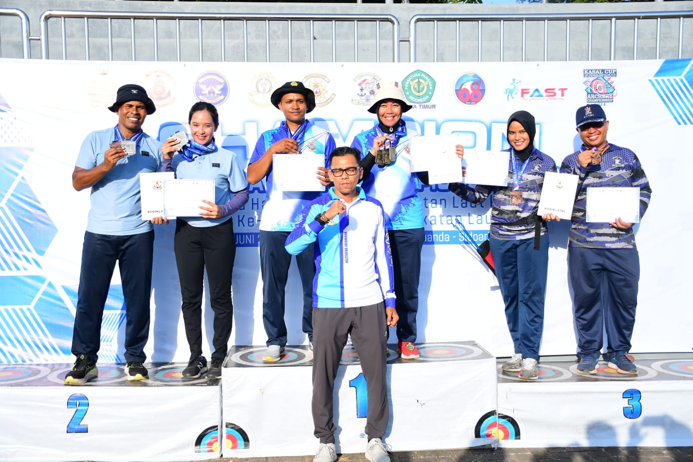 Dan untuk kelas Mixed Team Barebow Militer, Tim Kodiklatal menjadi Juara 1 dengan atlet Lettu Laut (PM/W) Reni Amriani dan Letda Mar Ari Wibowo, sedangkan Juara 2 dimenangkan oleh Tim Koarmada II dan Juara 3 dimenangkan oleh Tim STTAL.