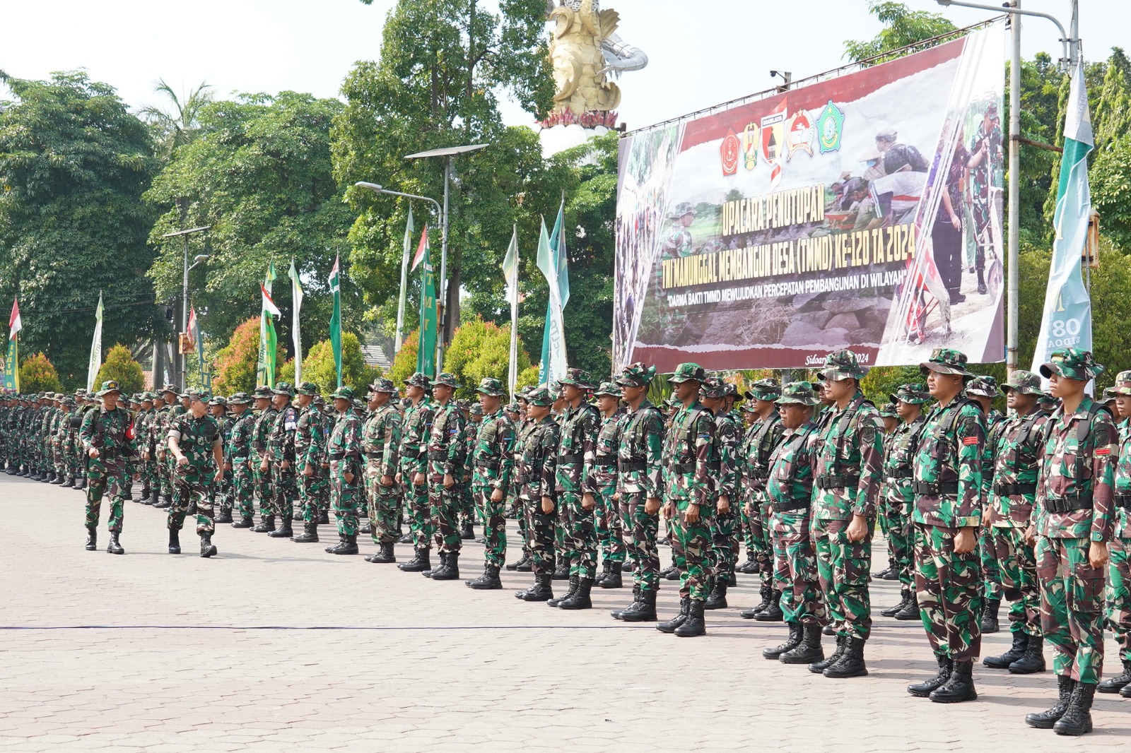 TMMD Ke-120 TA. 2024 mengusung tema “Dharma Bakti TMMD Mewujudkan Percepatan Pembangunan di Wilayah”.