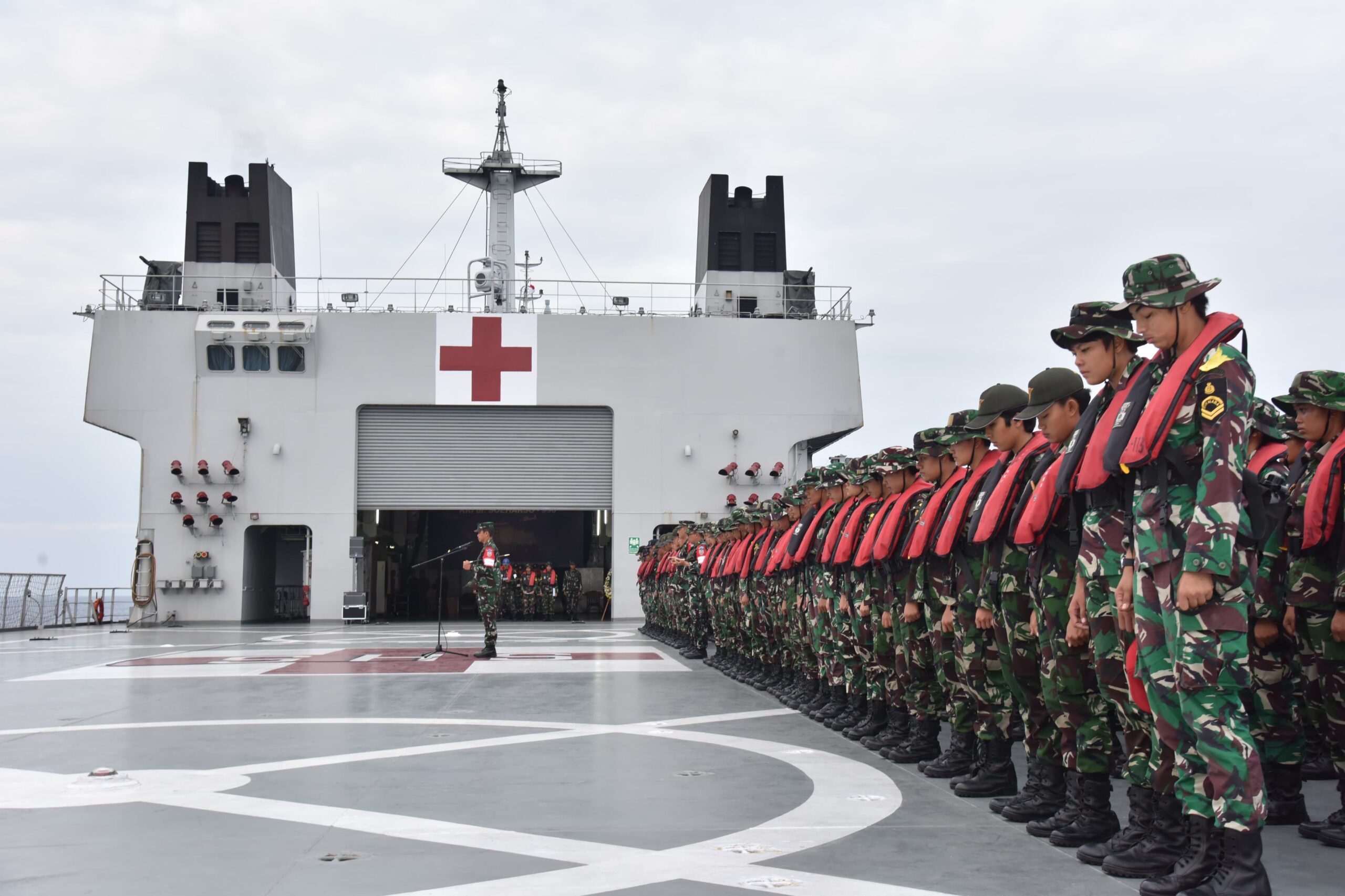 Hadir dalam Upacara tersebut Komandan KRI dr. Soeharso, Palaklat dan seluruh Pejabat Satgas Lattek Pelayaran Gabungan WJY/XXII dan para Pabingsis serta Bingsis. (jo)