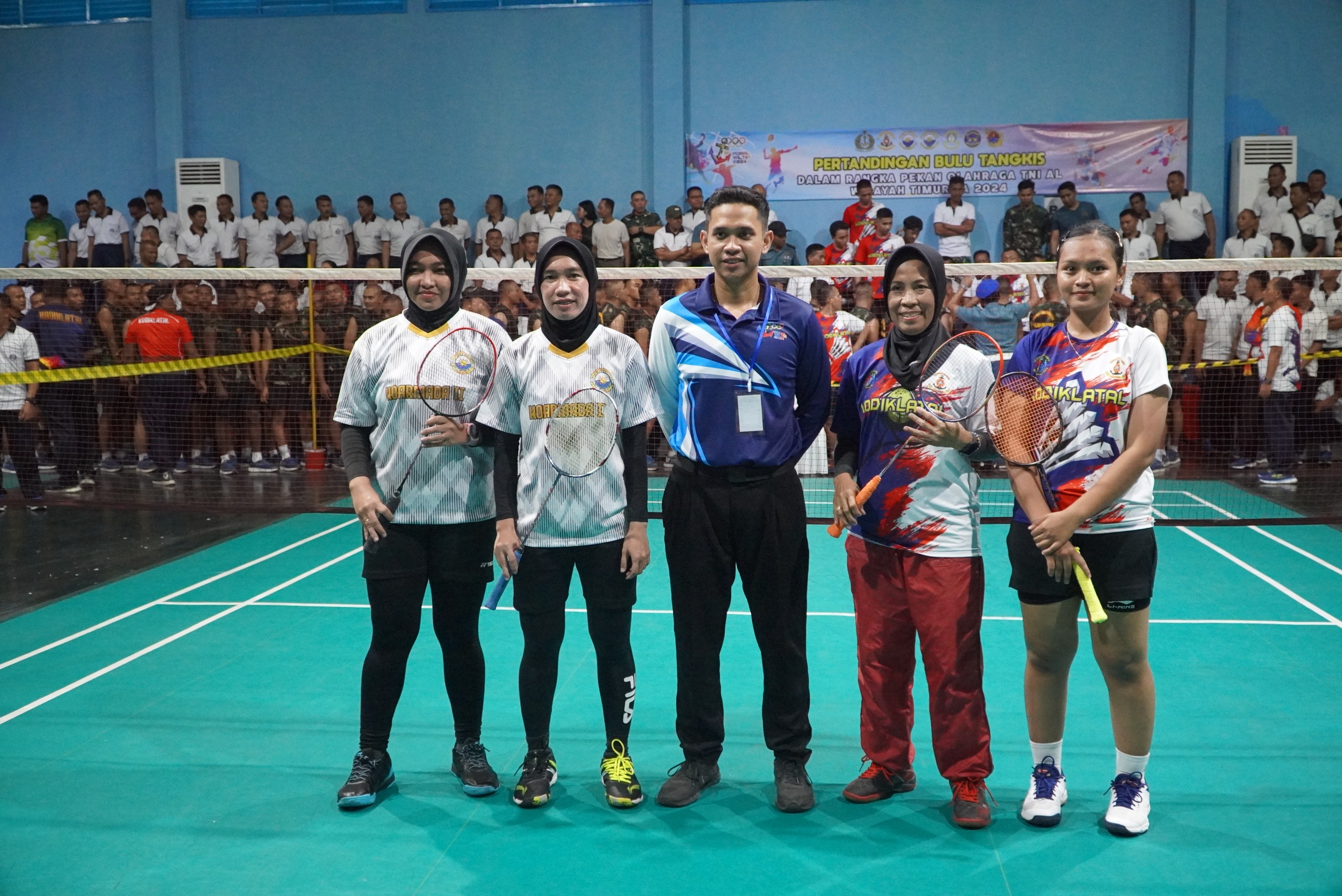 Surabaya, LNM – Dengan persiapan yang matang dan semangat tinggi dalam bertanding serta dukungan dari Komandan Kodiklatal (Dankodiklatal) Letjen TNI Marinir Nur Alamsyah didampingi Ketua Gabungan Jalasenastri Kodiklatal Ny. Ayu Nur Alamsyah dan para Supporter Kodiklatal, akhirnya Tim Kontingen Cabang Olah Raga (Cabor) Bulu Tangkis dan Tim Tenis Lapangan Kodiklatal berhasil mengalahkan Tim Lawan dalam ajang pertandingan Pekan Olah Raga TNI Angkatan Laut Wilayah Timur (Porwiltim) Tahun 2024 di Gor AAL Bumimoro Surabaya. Senin (23/06/2024).
