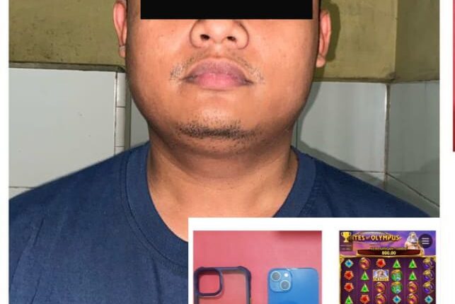 Pelaku saat ditangkap sedang asyik main judi slot online Pragmatic-gates Of Olympus disitus website Angsa4d.