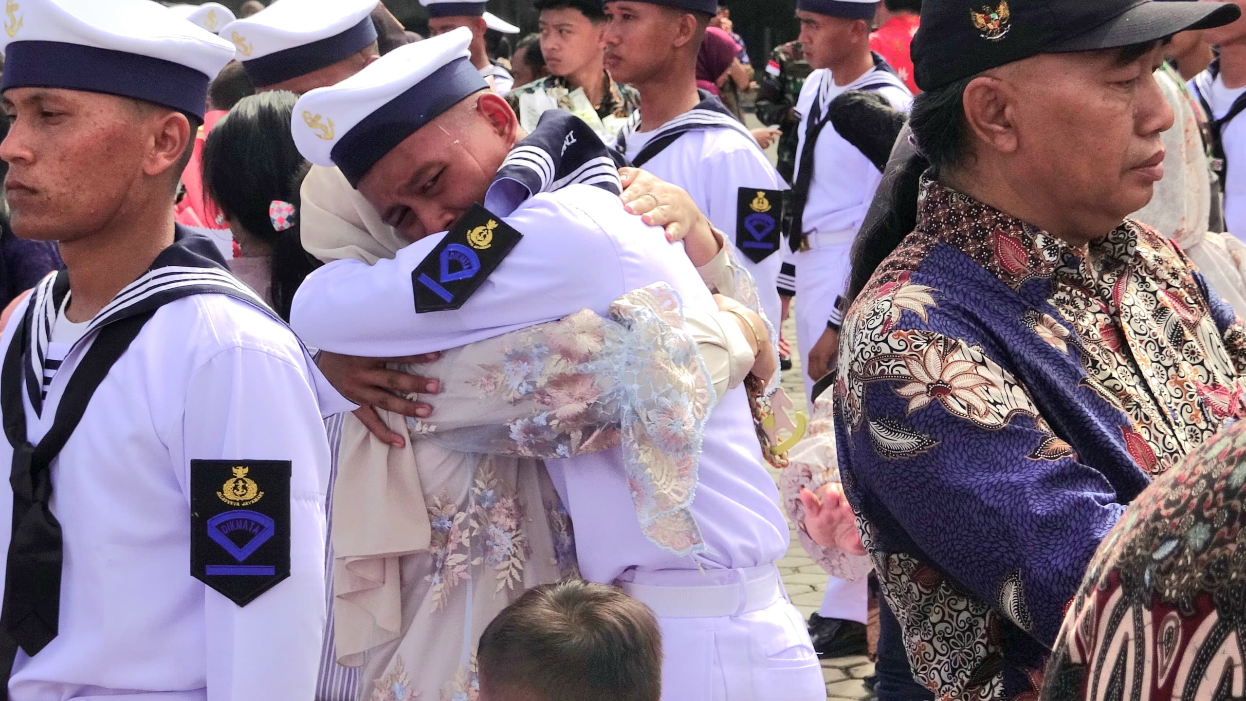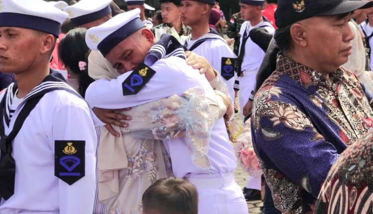 Surabaya, LNM – Tangis haru dan bangga keluarga mewarnai Upacara Pelantikan dan Pengambilan Sumpah para Siswa Pendidikan Pertama Tamtama (Dikmata) TNI Angkatan Laut (TNI AL) Angkatan 44 TA. 2024 Satdik – 1 Kodiklatal yang dipimpin langsung oleh Komandan Kodiklatal (Dankodiklatal) Letjen TNI Marinir Nur Alamsyah, bertempat di Lapangan Mako Satdik – 1 Tanjung Uban, Kamis (04/07/2024).