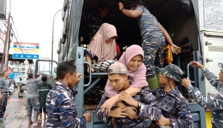 Prajurit Jalasena Lanal Gorontalo Bantu Evakuasi Korban Banjir di Kabupaten Gorontalo
