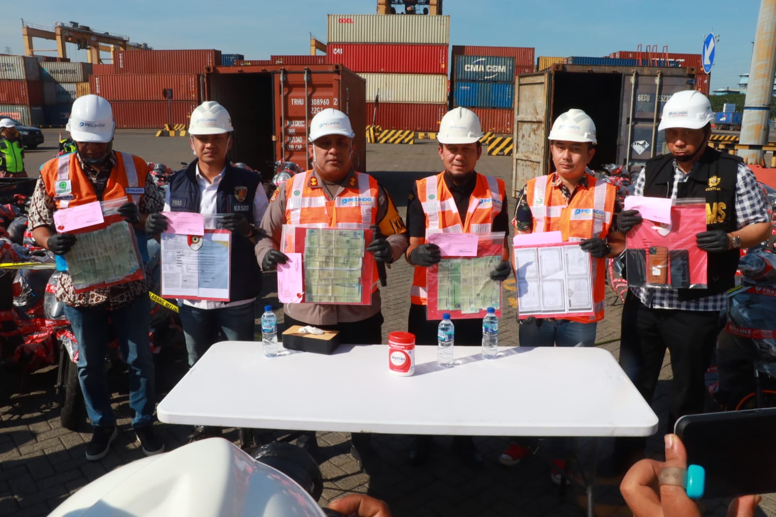 “Dari hasil pengembangan, diketahui bahwa PT RA milik tersangka T. Ada dua kontainer yang akan diekspor ke Timor Leste, yang berisi dua kendaraan roda empat dan 34 kendaraan roda dua,” tandas William.