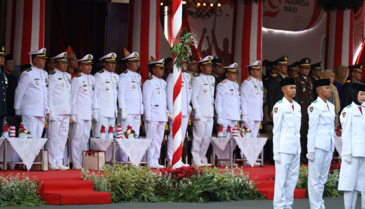 Surabaya, LNM – Direktur Doktrin (Dirdok) Kodiklatal Laksma TNI Nouldy J. Tangka mewakili Komandan Kodiklatal (Dankodiklatal) Letjen TNI Marinir Nur Alamsyah menghadiri Upacara Penurunan Pengibaran Bendera Merah Putih dalam rangka Hari Ulang Tahun Ke-79 Kemerdekaan Republik Indonesia Tahun 2024, dengan mengusung tema, “Nusantara Baru Indonesia Maju”, yang digelar oleh Pemerintah Provinsi Jawa Timur, bertempat di Gedung Negara Grahadi Jl. Gubernur Suryo No. 7 Surabaya, Sabtu (17/08/2024).