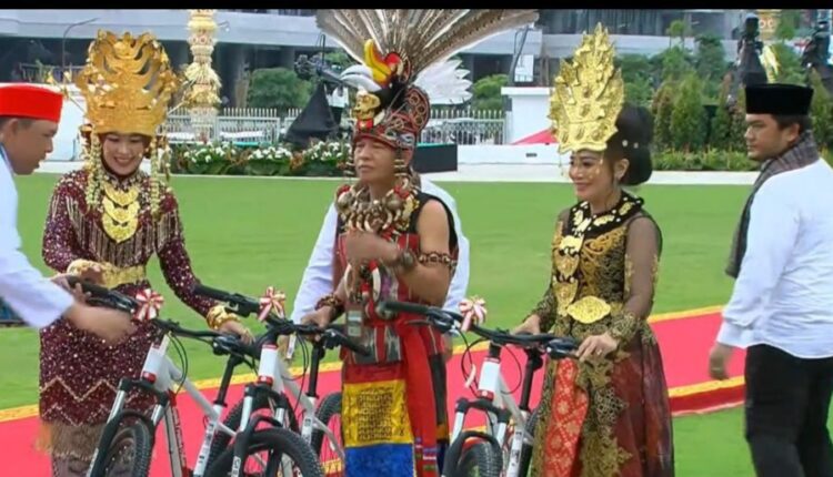 Kaltim-IKN, LNM – Ibu Ketua DPD RI AA LaNyalla Mahmud Mattalitti, Enny LaNyalla, mendapatkan hadiah sepeda dari Presiden Joko Widodo (Jokowi) di acara peringatan upacara hari kemerdekaan Republik Indonesia yang digelar di Ibu Kota Nusantara (IKN), Kalimantan Timur, 17 Agustus 2024.