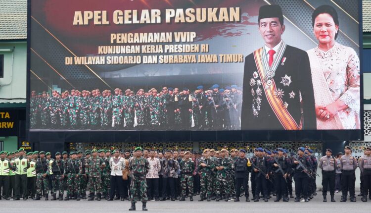 Surabaya, LNM – Kepala Staf Korem (Kasrem) 084/Bhaskara Jaya, Kolonel Inf Erwin, S.I.P., M.Han. memimpin apel gelar pasukan pengamanan VVIP di lapangan A. Yani Makodam V/Brawijaya, Rabu(4/9/2024).
