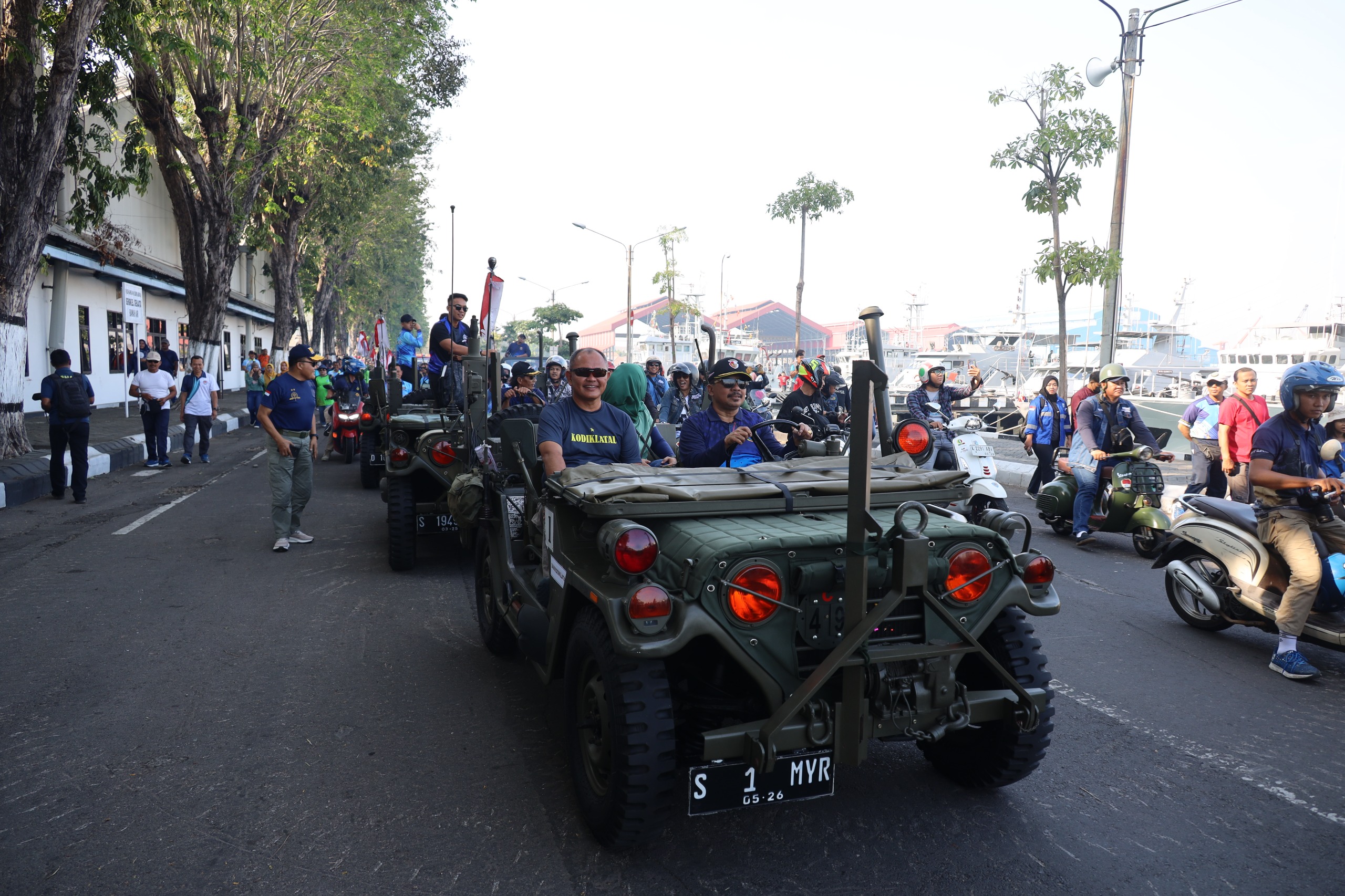 Bertolak dari dari Mockup Kodiklatal, rombongan jeep wilis Irkodiklatal bersama Komunitas Vespa di Surabaya konvoi menuju Koarmada II, untuk bergabung bersama dengan pejabat kotama TNI AL lainnya.