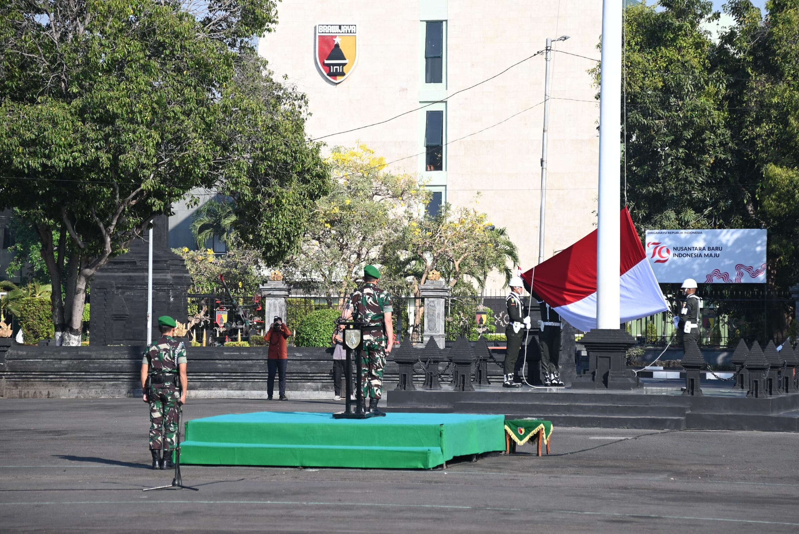 Surabaya, LNM – Pangdam V/Brawijaya, Mayjen TNI Rudy Saladin, M.A., memimpin Upacara Bendera Tujuh Belasan di Lapangan Kodam V/Brawijaya, Senin (17/09/2024). Dalam amanatnya, Pangdam menekankan pentingnya memaknai upacara tersebut bukan sekedar rutinitas, melainkan sebagai bentuk penghormatan kepada jasa para pahlawan.