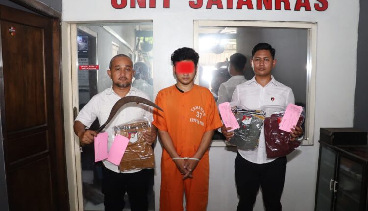 Tersangka yang dikenal kejam dan tidak segan melukai korban dengan celurit, dibekuk Unit Jatanras Satreskrim Polres Pelabuhan Tanjung Perak Surabaya, di kawasan Kapas Baru Surabaya, setelah aksinya terekam CCTV viral di medsos.