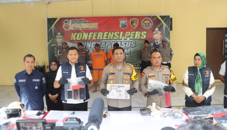 “Menindaklanjuti video viral di media sosial pria pamerkan senjata api dan amunisinya di GOR Sidoarjo Bulan Agustus yang lalu, tim kami sudah mengamankan dua orang pria,” kata Kapolresta Sidoarjo Kombes.Pol. Christian Tobing, Rabu (2/10/2024).
