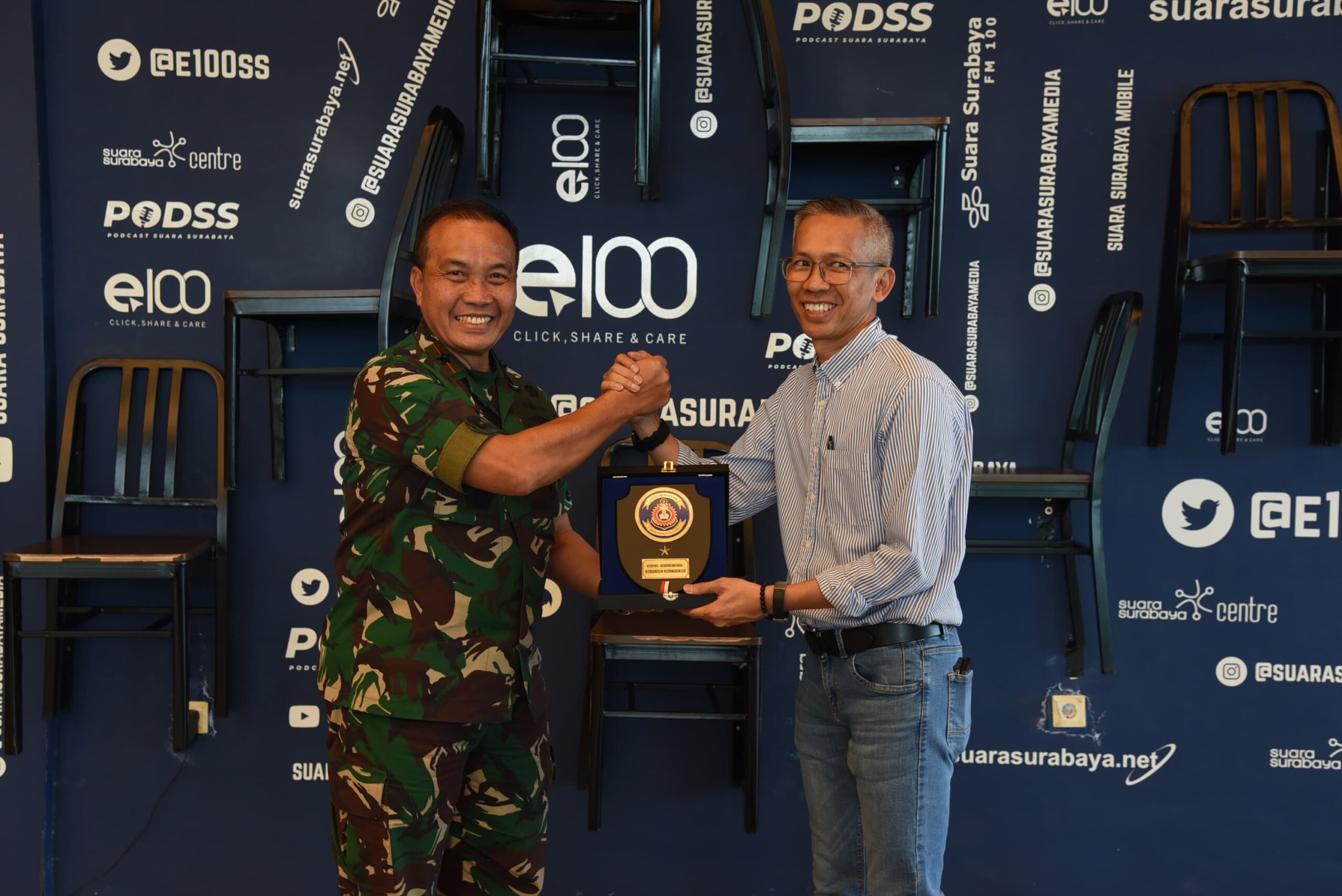 Dalam kunjungannya, Dankodikdukum didampingi Kasubdismulmed Dispen Kodiklatal Letkol Laut (KH) Bambang Suroto, Kaur TU Dispen Kodiklatal Lettu Laut (S) Andi Anjala, dan PNS Prihatin diterima serta disambut langsung oleh CEO Suara Surabaya, Verry Firmansyah, dan Redaktur Suara Surabaya, Sih Wismanti.