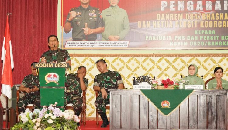 Sampang, LNM – Dalam rangka meningkatkan soliditas dan sinergitas satuan serta memberikan arahan langsung kepada seluruh prajurit, Danrem 084/BJ, Brigjen TNI Danny Alkadrie, didampingi Ny. Nining Danny Alkadrie, melaksanakan kunjungan kerja ke Kodim 0829/Bangkalan dan Kodim 0828/Sampang pada hari Kamis (17/10). Kunjungan ini menjadi momen penting untuk lebih mengenal wilayah tugas, mendekatkan diri kepada para prajurit dan Persit, serta memberikan motivasi dalam menjalankan tugas.