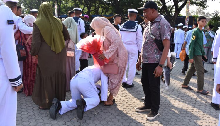 Sidoarjo, LNM – Berkat doa orang tua berhasil mengantarkan Kelasi Dua (Kld) POM Krisna Setya Budi sebagai Siswa terbaik dari 433 Siswa Dikmata TNI Angkatan Laut (TNI AL) Angkatan 44 Gelombang 1 TA. 2024. Dipimpin langsung oleh Komandan Kodiklatal (Dankodiklatal) Letjen TNI Marinir Nur Alamsyah, Upacara Pelantikan dan Pengambilan Sumpah dilaksanakan di Lapangan Candradimuka Puslatdiksarmil Kodiklatal, Juanda Sidoarjo, pada Jumat (25/10/2024).
