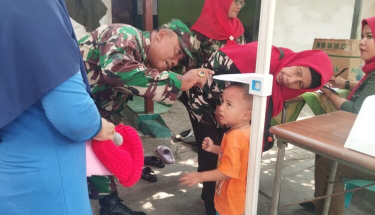 Upaya Cegah Stunting, Babinsa Kenjeran Bersama Petugas Kesehatan Lakukan Penimbangan Balita