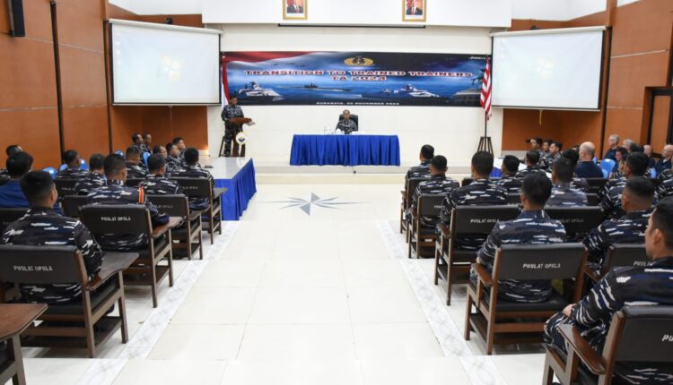 Surabaya, LNM – Komandan Kodikopsla (Dankodikopsla) Kodiklatal Laksma TNI Muhammad Iwan Kusumah mewakili Komandan Kodiklatal (Dankodiklatal) Letjen TNI Marinir Nur Alamsyah menghadiri Penutupan Pelatihan Transition to Trained Trainers (TTT) di Puslat Kaprang Kolat Koarmada II, Ujung Surabaya, Jumat (22/11/2024).