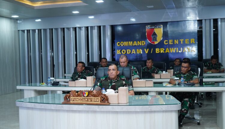 Surabaya, LNM – Pangdam V/Brawijaya, Mayjen TNI Rudy Saladin, M.A, mengikuti video konferensi yang digelar oleh Menkopolkam, Jenderal Pol (Purn) Budi Gunawan pada Rabu (27/11/2024), guna membahas proses pengamanan Pemilukada yang saat ini sedang berlangsung.