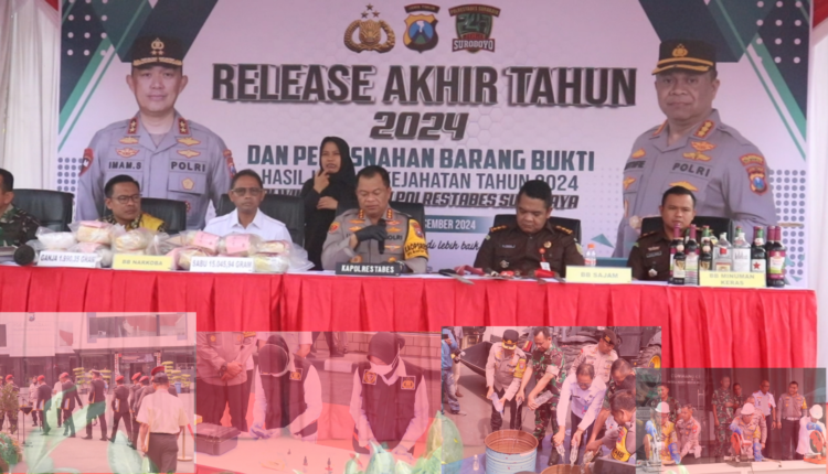 Surabaya, LNM – Release Akhir Tahun 2024 dan Pemusnahan Barang Bukti Hasil Ungkap Kejahatan 2024 dilakukan Polrestabes Surabaya, pada Senin (30/12/24) sekitar pukul 08.00 wib, di Jl. Sikatan No.1, Surabaya.