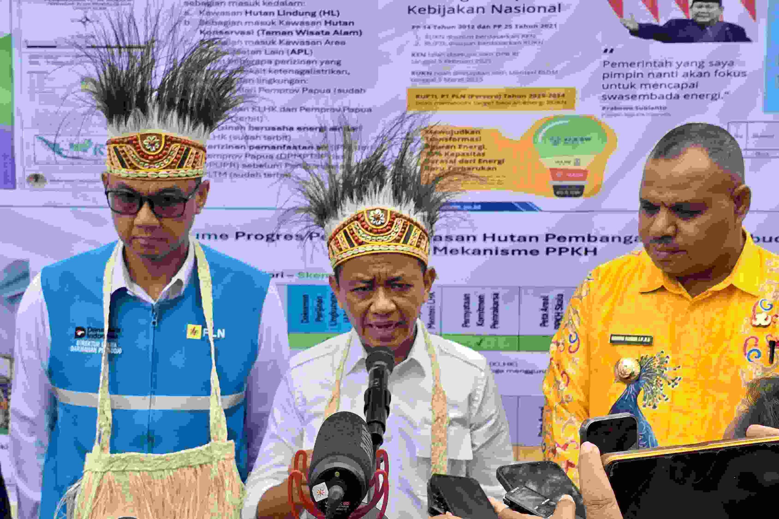 Menteri Energi dan Sumber Daya Mineral (ESDM), Bahlil Lahadalia, meninjau langsung lokasi pembangunan PLTM Wabudori yang ke depannya akan menyuplai listrik bagi masyarakat Supiori, sekaligus mendukung program Presiden Prabowo Subianto tentang swasembada energi.