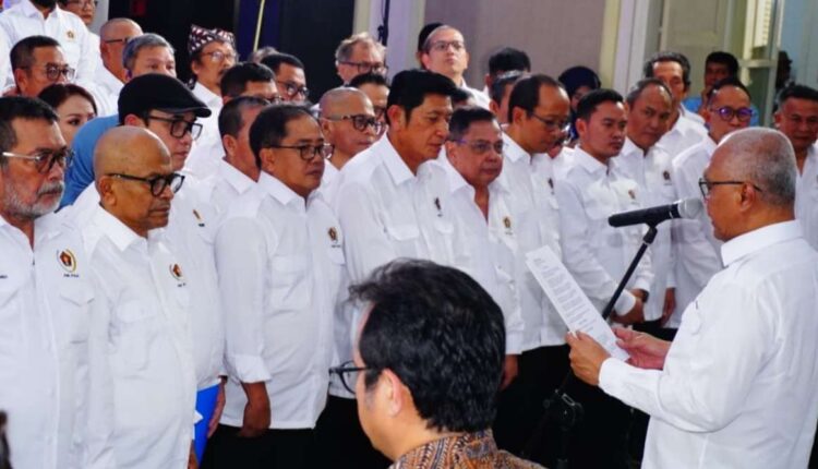 Pengukuhan Kepengurusan PWI Pusat 2025-2030 diawali pembacaan Surat Keputusan oleh Sekretaris Jenderal (Sekjen) PWI Pusat, Zulmansyah Sekedang memanggil satu per satu jajaran pengurus maju ke depan.