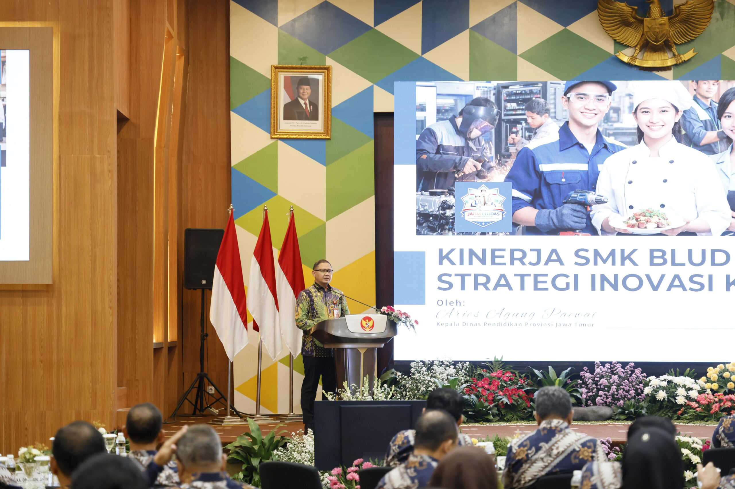 Aries juga menjelaskan bahwa pengembangan SMK BLUD di Jawa Timur diarahkan untuk memperkuat jejaring vokasi sekaligus meningkatkan potensi kolaborasi dengan Dunia Usaha dan Dunia Industri (DUDI) sehingga lulusan SMK memiliki daya saing tinggi dan siap memasuki dunia kerja.
